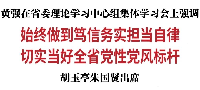 1月9日,省委书记黄强主持召开省委理论学习中心组集体学习会。省委副书记、省长胡玉亭,省政协主席朱国贤出席会议。